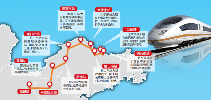 潍烟铁路西起昌邑,东至烟台,全线总长237公里,是国家沿海高铁和环渤海高铁的重要组成部分,建成后,将填补胶东半岛北部地区无高铁的空白,对优化京沪铁路通道,促进环渤海区域经济社会高质量发展有重要作用。